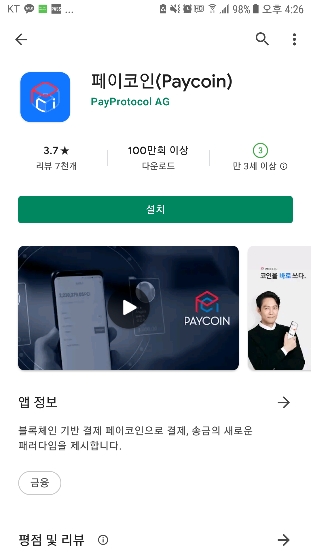 구글 플레이스토어나 앱스토어에서 페이코인 검색 후 설치해준다