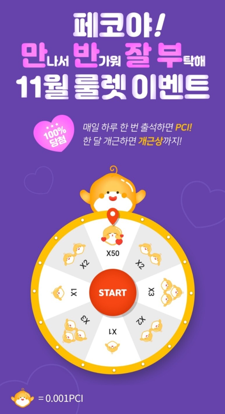 룰렛을 돌려 운이 좋으면 페이코인 X50를 받을 수 있으니